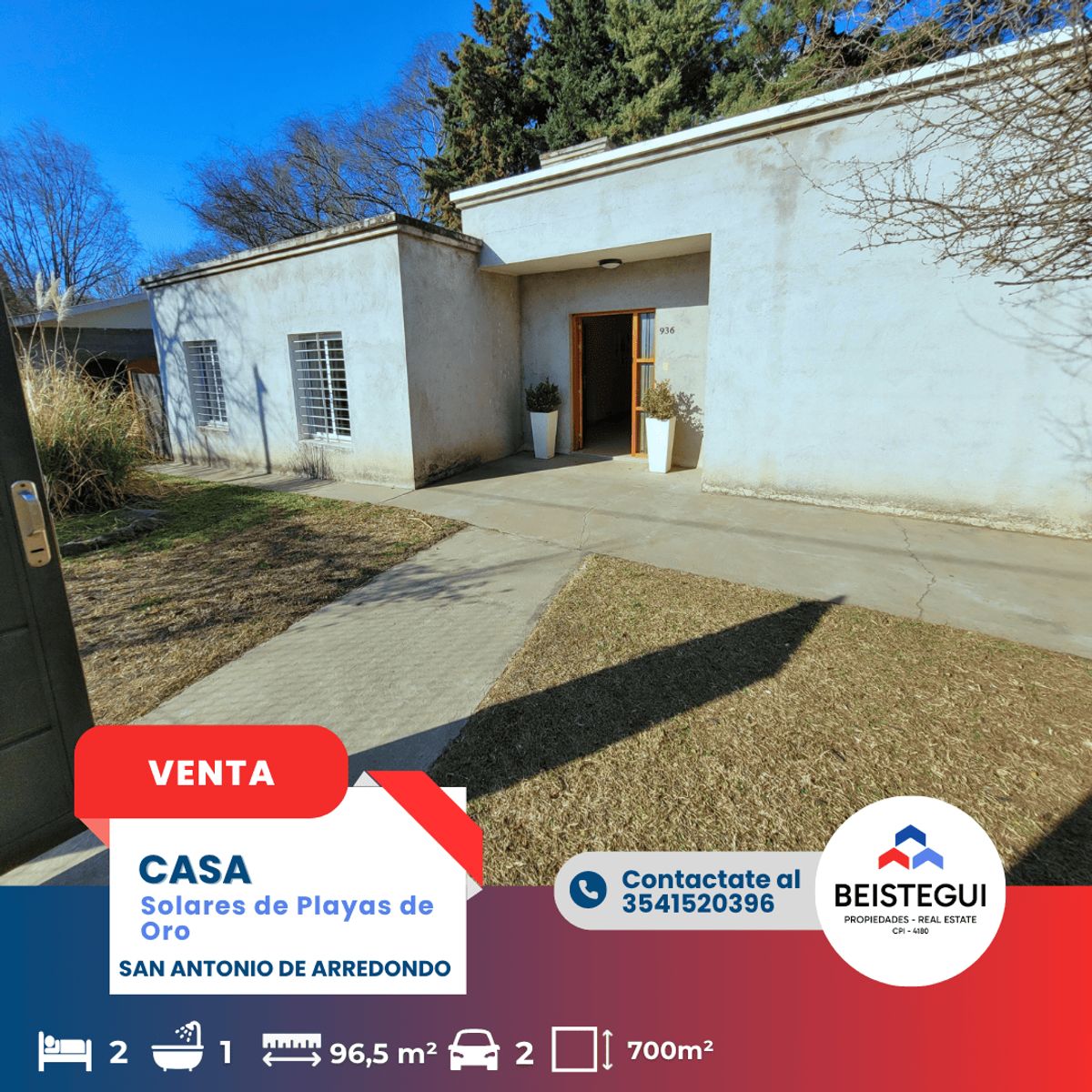 VENTA - Casa en San Antonio de Arredondo, ubicada en el barrio Las Ensenadas. Se encuentra sobre un terreno de 702 m² y cuenta con 96,5 m² construidos en una sola planta. La propiedad dispone de living-comedor, cocina, pasillo distribuidor, dos dormitorios con placard y un baño completo. Además, posee garage con capacidad para dos vehículos y lavadero. Está situada a solo tres cuadras del río San Antonio, en una zona tranquila y rodeada de naturaleza. La vivienda no cuenta con gas natural. Una excelente oportunidad para quienes buscan comodidad y entorno serrano. Si querés conocerla o coordinar una visita, comunicate con nosotros.